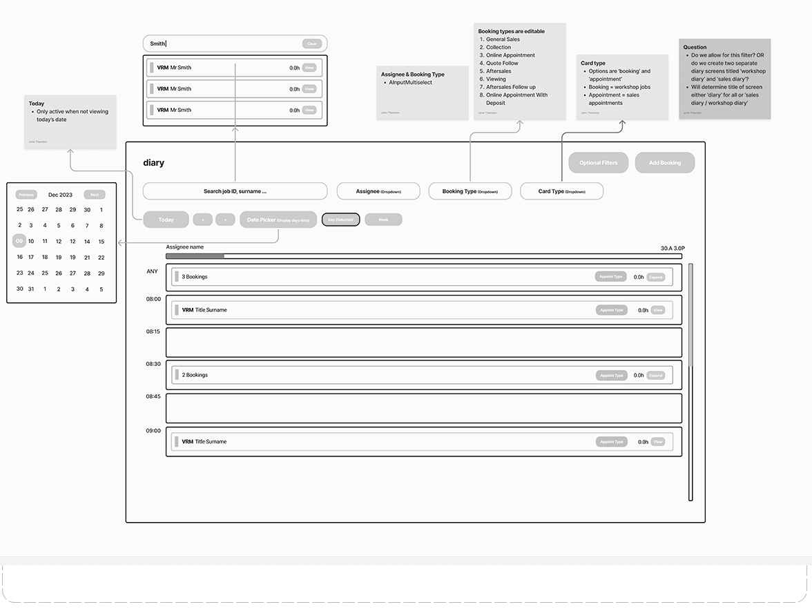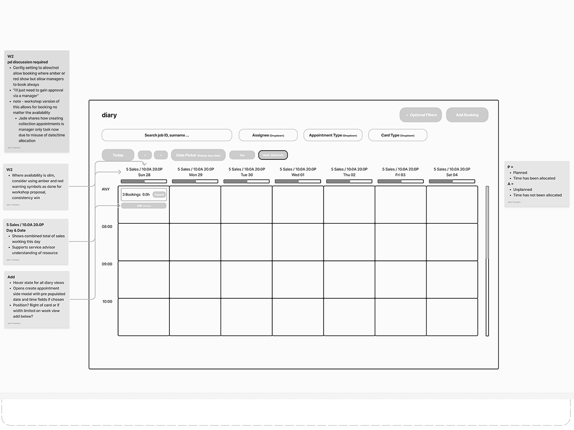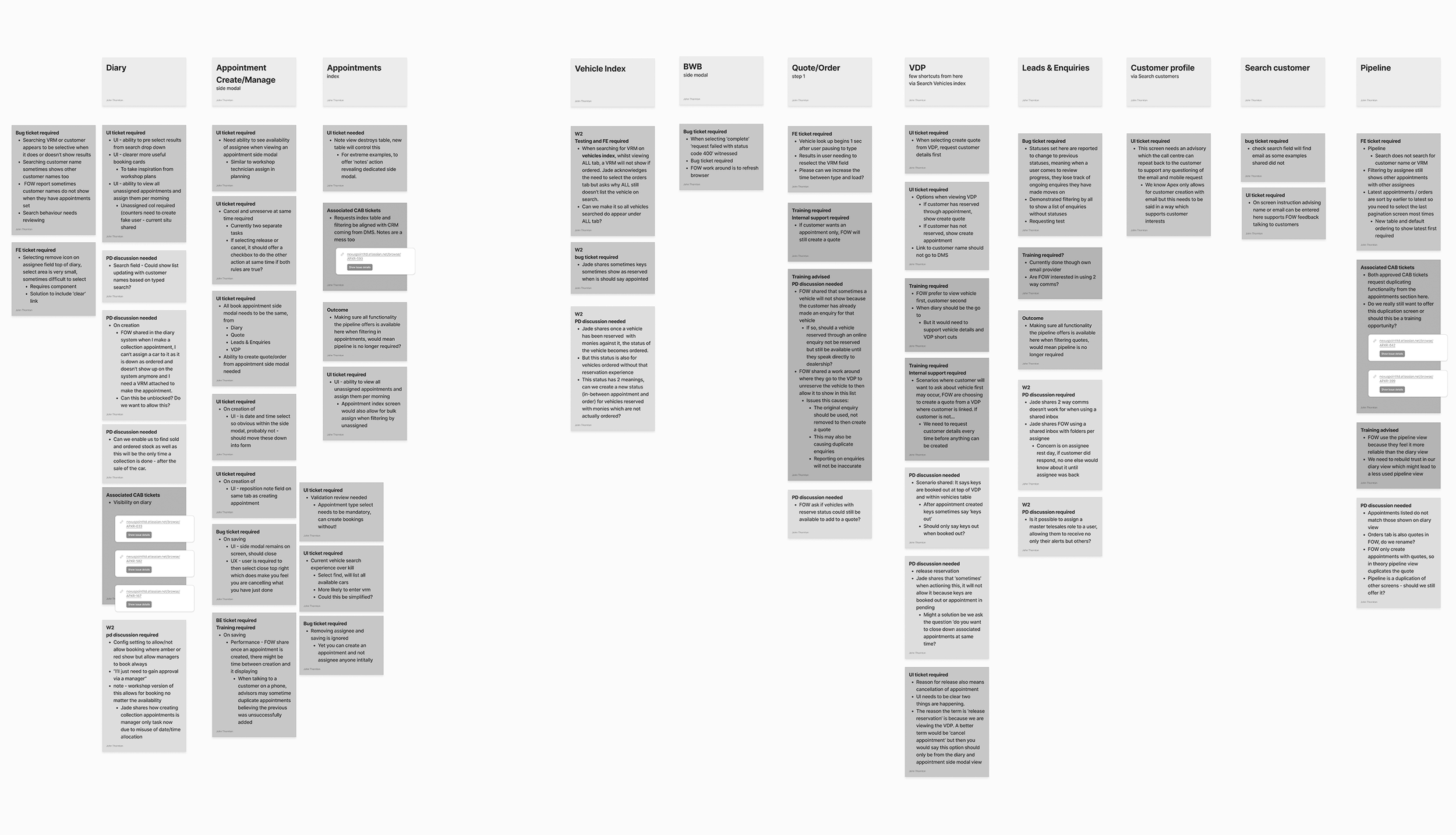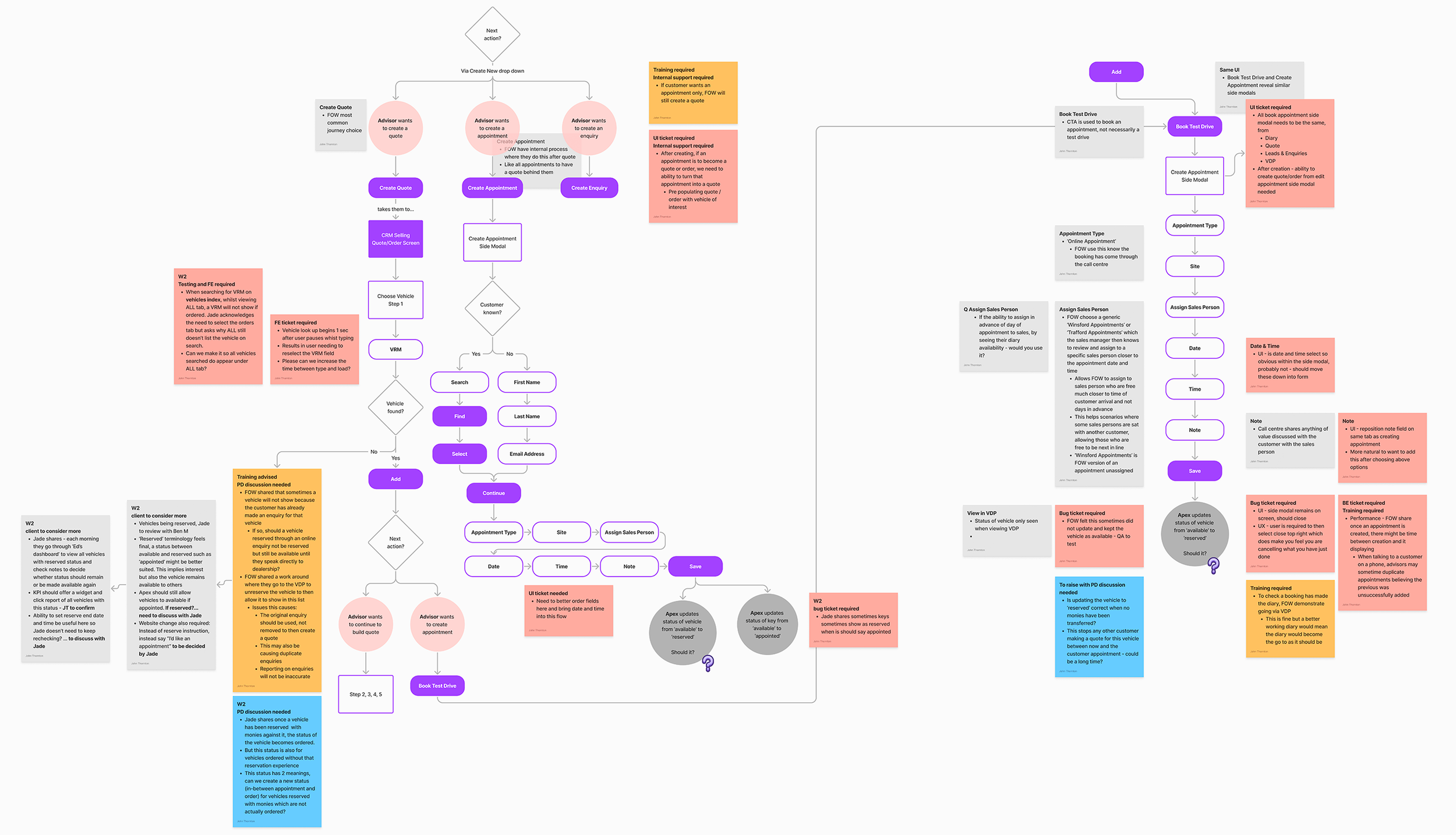 To pinpoint the challenges faced by the car dealership with its existing diary and appointment feature, I organised interviews and focus group sessions, where I carefully listened to a curated group of user experiences. Initially, I delved into understanding their primary interactions within the software, specifically focusing on the diary and appointment functionalities. This exploration prompted discussions about their pain points, frustrations, and the identification of bugs and blockers.
