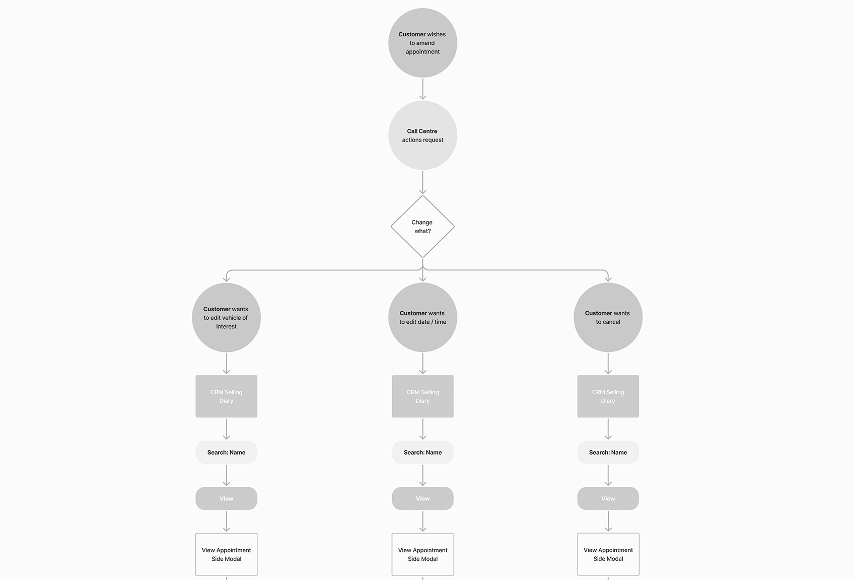 Again, I focused on what the customer is most likely to request change from an existing booking, and then mapped out the journey needed to fulfil that request.